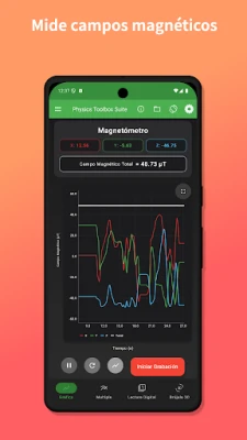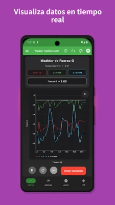 Experimenta una suite completa de instrumentos virtuales que abarcan desde el seguimiento cinemático detallado con el acelerómetro lineal y el giroscopio, hasta la inmersión en el sonido con el analizador de espectro y el generador de tonos. Ilumina tu curiosidad con el sensor de luz y el detector de color de la cámara, o navega con la brújula y el magnetómetro para visualizar campos magnéticos en realidad aumentada. Para experimentos más complejos, las funciones Multi Registro y Sensor Dual permiten la recolección y visualización simultánea de múltiples datos. Además, cada sensor ofrece información detallada sobre su funcionamiento físico y recursos adicionales, enriqueciendo tu experiencia de aprendizaje y experimentación. Los datos recopilados pueden ser grabados y exportados fácilmente para un análisis posterior.