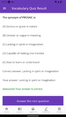 Olvídate de las tarjetas de memoria o el estudio de raíces etimológicas; esta aplicación se centra en la práctica intensiva mediante un extenso abanico de cuestionarios de vocabulario. Cada ejercicio está cuidadosamente diseñado para consolidar tu aprendizaje y edificar una base lingüística sólida. Una vez que hayas dominado el listado completo de vocabulario, experimentarás una confianza sin precedentes, sabiendo que posees las herramientas lingüísticas para enfrentar no solo el examen, sino cualquier desafío comunicativo. Aprenderás a seleccionar las palabras exactas para cada contexto, enriqueciendo tu expresión oral y escrita y eliminando la frustración de no encontrar el término preciso.